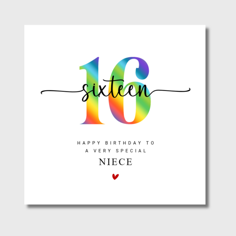A vivid and colourful 16th Birthday card for daughter, granddaughter, sister, niece, goddaughter or friend.