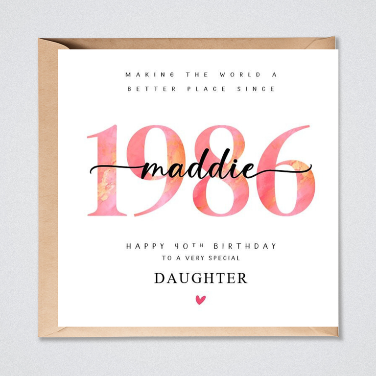 A personalised 40th Birthday card 1986 for Daughter Granddaughter Sister Niece Auntie Goddaughter Godmother Friend Her