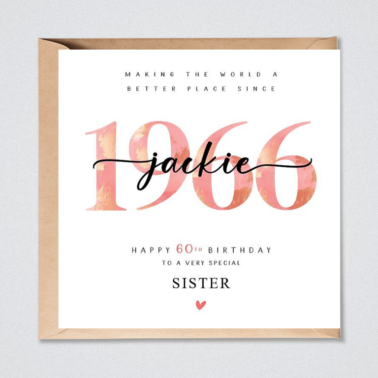 A personalised 60th Birthday Card for sister, mum, daughter, grandmother, niece, auntie, sister-in-law, cousin, friend.